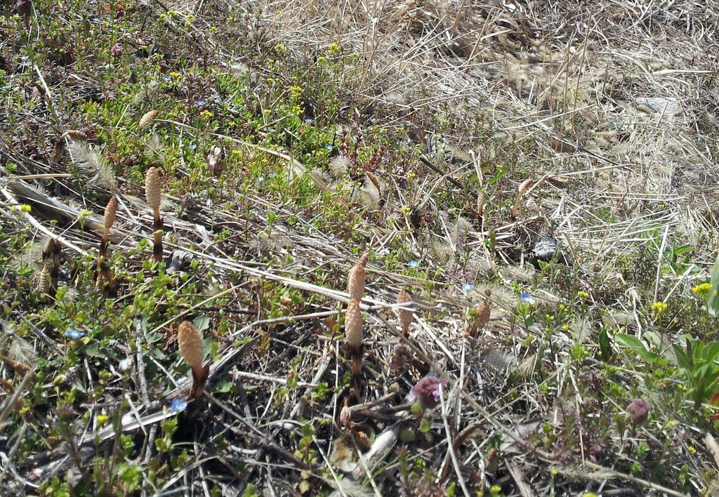 散歩道の近くの小川の土手には、ツクシンボやイヌナズナ、オオイヌフグリなどが枯草をかき分けて顔を出していました。