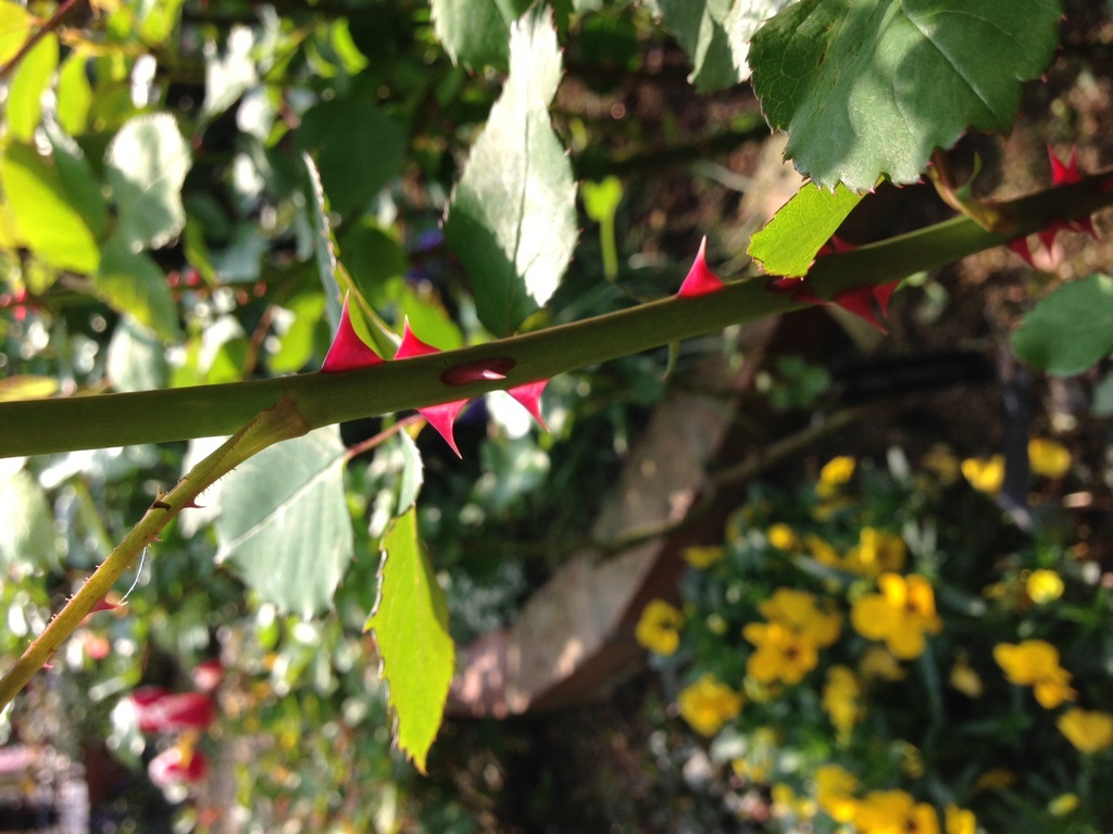 棘に日が射してきれいな濃いピンク色に輝いて、綺麗ですね。