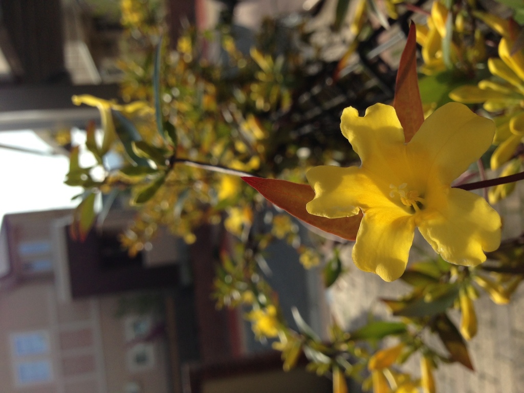 例年、蕾でそのまま開かず枯れてしまったカロライナジャスミンも今年はいい感じに咲いてます。