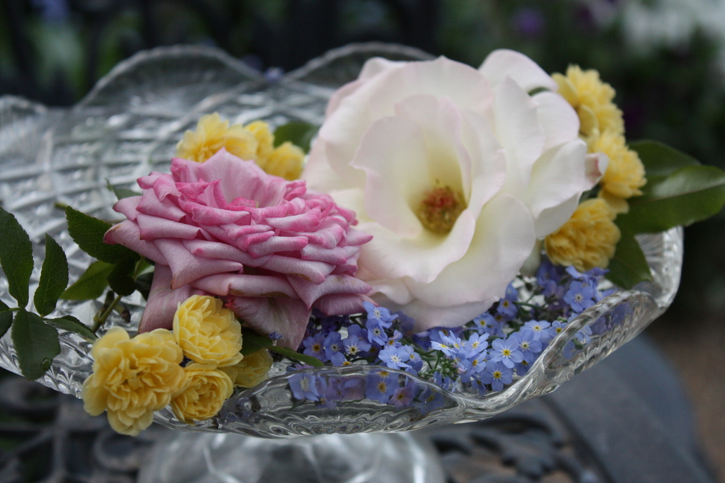 涼しそうなガラスに入ったバラのアレンジはもう初夏の匂いがします。マチルダの優しい色を思い出しました。我が家のマチルダは??札が飛んでしまい行方不明!