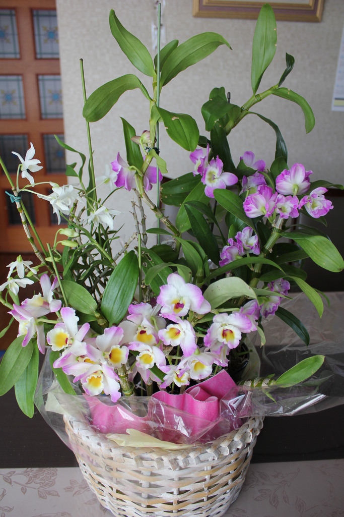 豪華なアレンジですね。自宅のお花でこんなバスケットが作れるってすごいです。