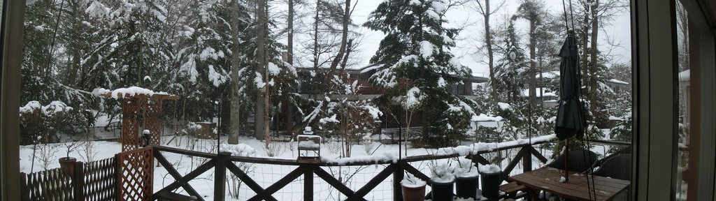 庭の木々や草花もやっと芽吹きはじめ、芝生も緑色になってきていたのに、一面真っ白になり1.5か月逆戻り。車のタイヤをスタッドレスのままにしておいてよかった。