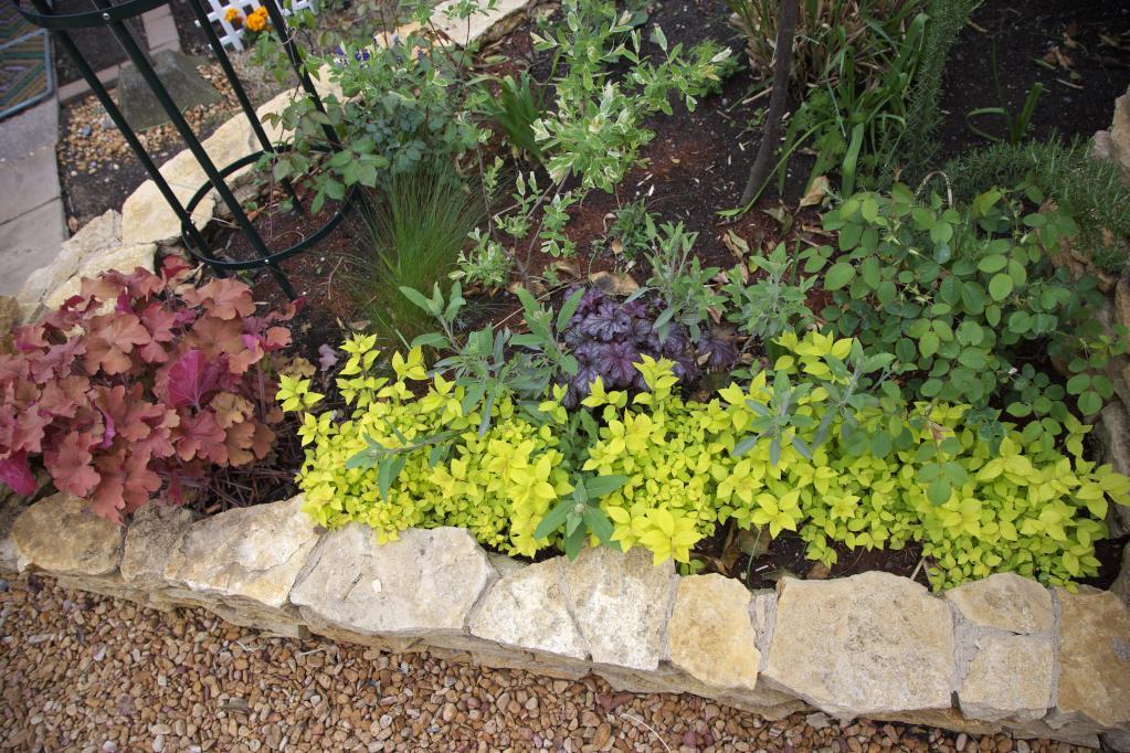 ライムグリーンとヒューケラのキャメルカラーのコントラストが美しいですね。