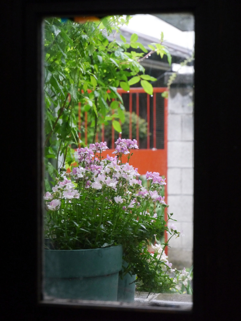 外は雨降り...庭仕事はできないけれど、たまたま見つけたドアの小窓から見える世界は、いつもと違う視点に面白さを感じました♪