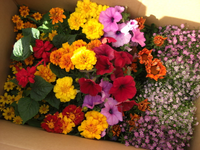 買出しですか。たくさんお春の花ですね。