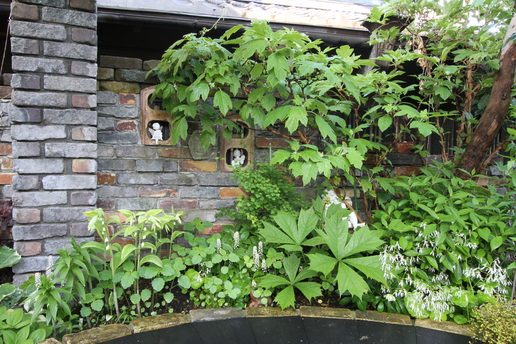 緑の青々しさが煉瓦の壁に映えてとても素敵ですね。(^。^)y-.。o○