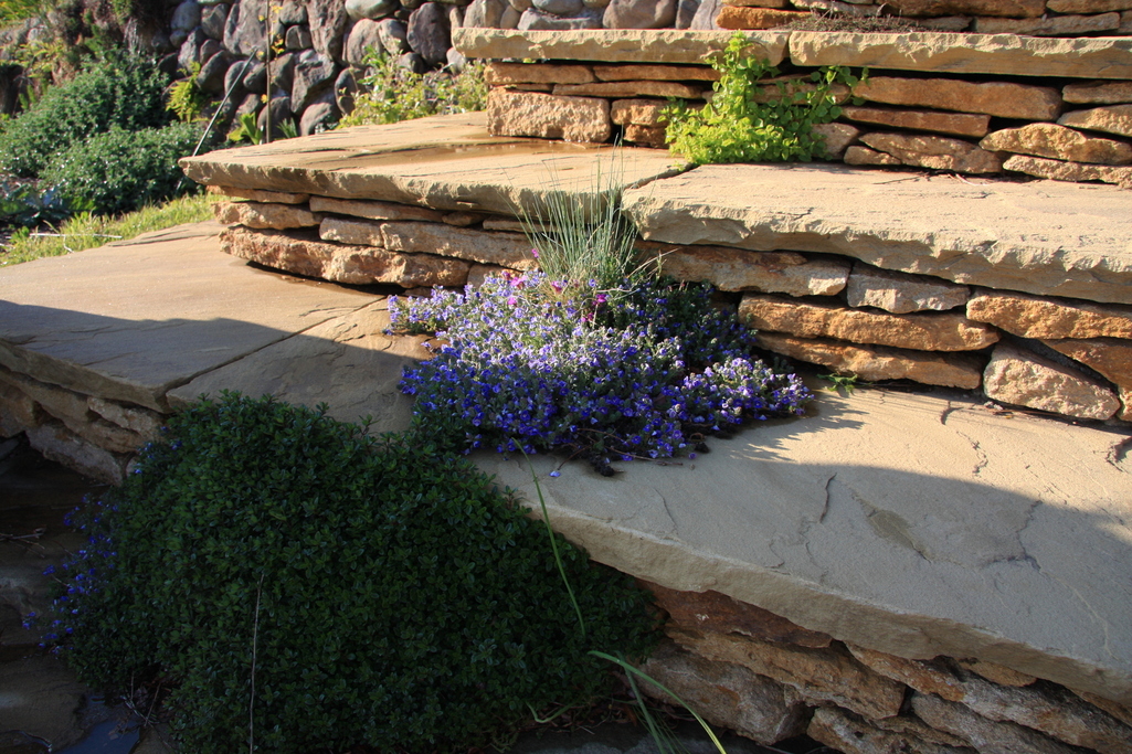 階段制作途中で植えこんだ植物、上からカンパニュラ、ベロニカ、タイム時間差で咲いてくれます。