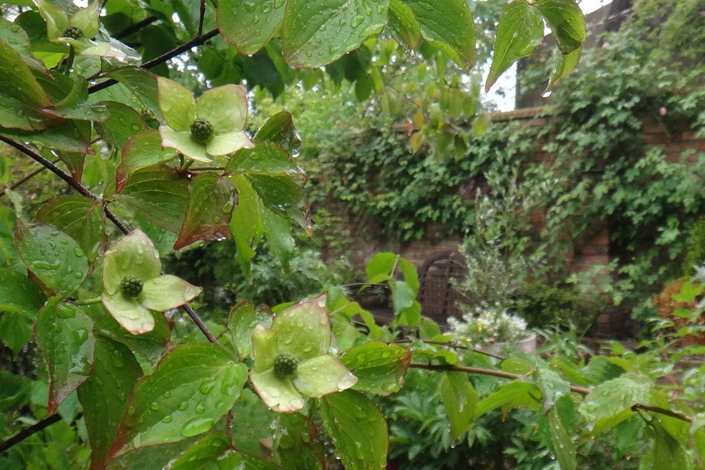 植物が生き生きして美しいお庭ですね。うっとりします。ヤマボウシさん焦ったでしょうね。