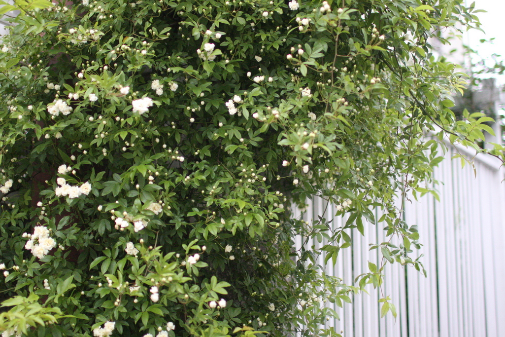 モッコウバラが少しずつ咲いています。長く楽しみたいからゆっくり咲いてね。