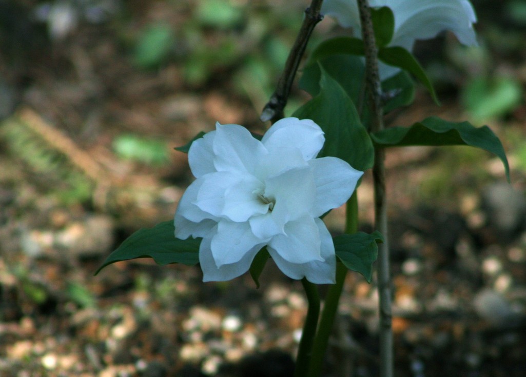 八重のエンレイソウも愛らしくて良いですね、エンレイソウの花は一重でも2週間以上咲いて