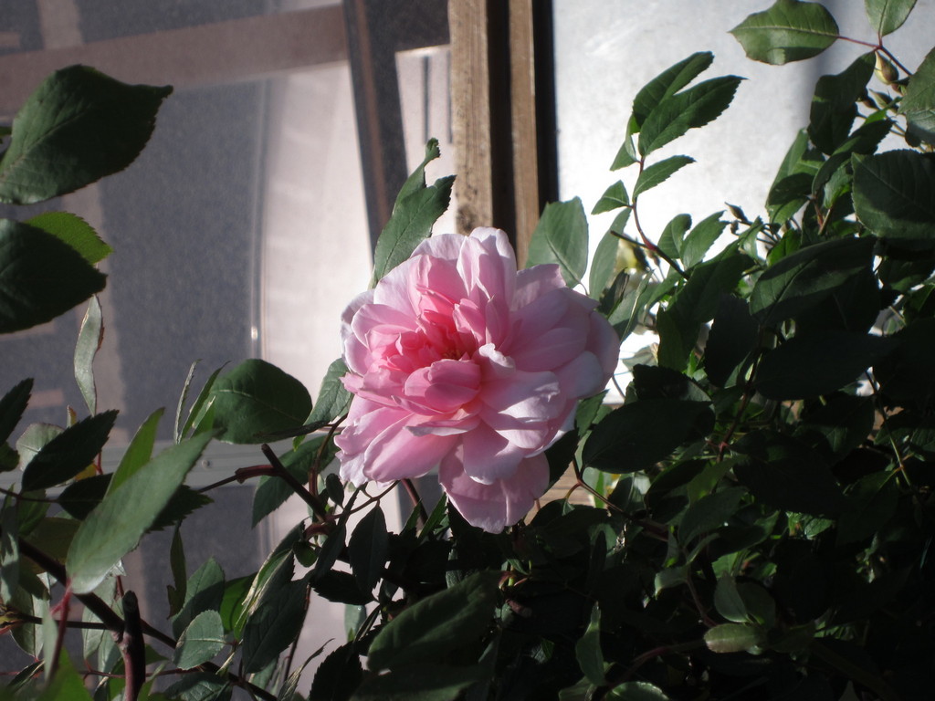 今年も最初に咲いてくれたバラです。2階の壁面に誘引しています。無農薬でも十分育つ強健種です。バラに感謝。