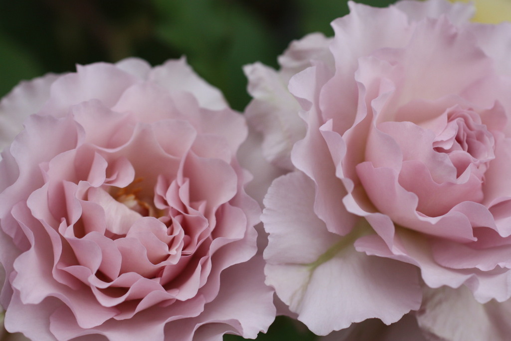 薔薇の色、フリル、形どれも素敵ですね!寄り添って咲く姿が心温まります。