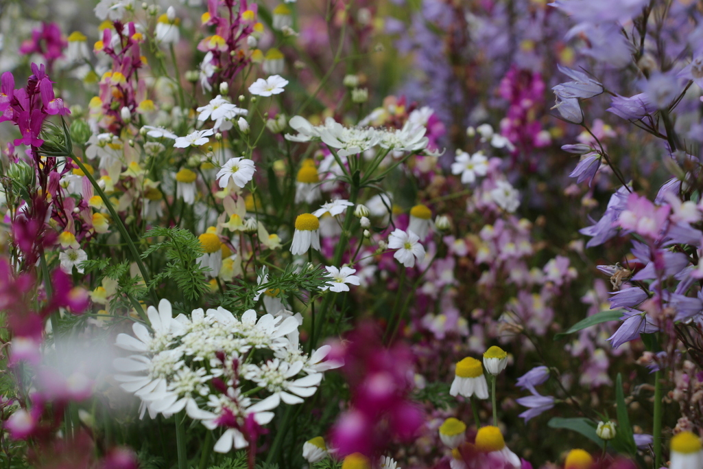 色んな花が咲いていて綺麗ですね~ 手前の白い花はなんという花でしょうか?