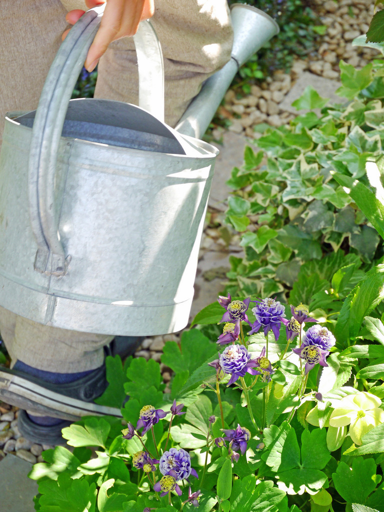ブリキのジョーロでお水やりって庭仕事が一段と楽しくなりますよね!