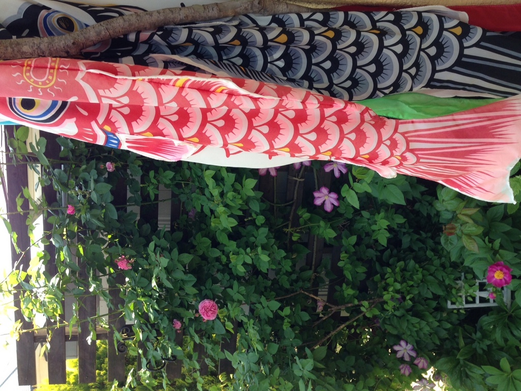 こどもの日も終わりました。4月から泳いでる鯉のぼりも早めに片付けようと思います。薔薇に引っかかってビリビリです。
