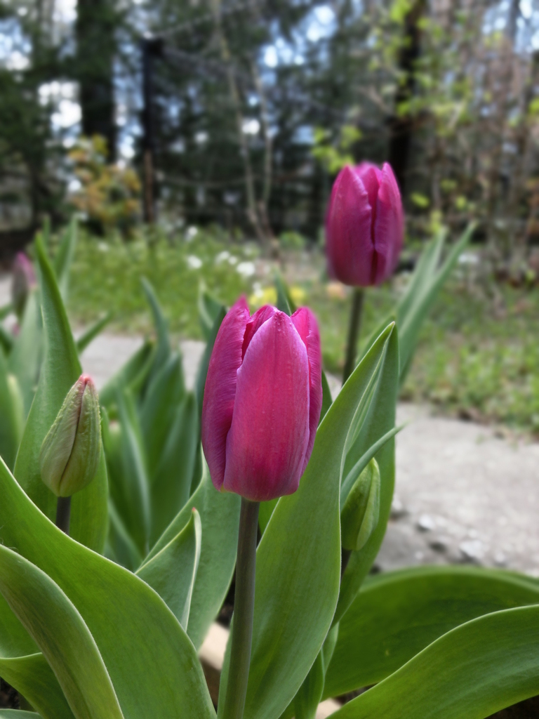 背景は雑木林でしょうか?軽井沢の風景にチューリップもいいですね。