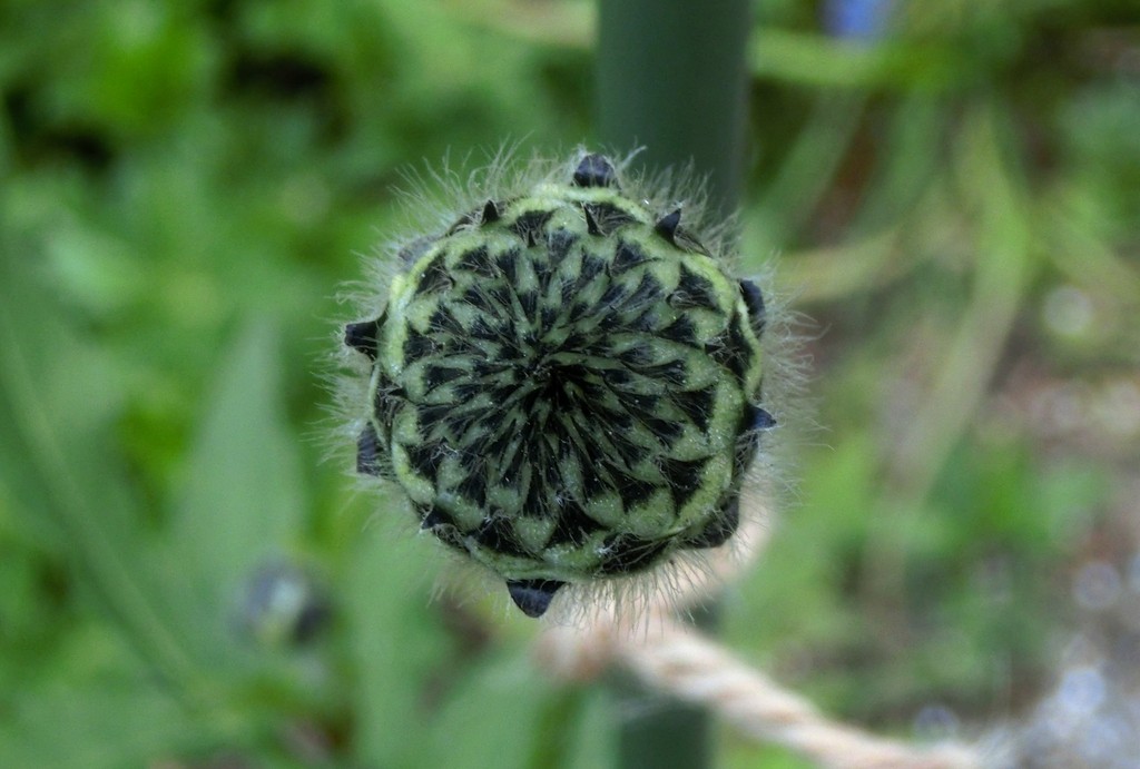 これはいったいなんでしょう? この実度とな幾何学模様はマツムシソウの仲間の蕾の模様です。小さな蕾の付いた苗を買って庭に植えていますが、明日の朝は-2度の予報なので霜対策と防寒をしなくちゃ。