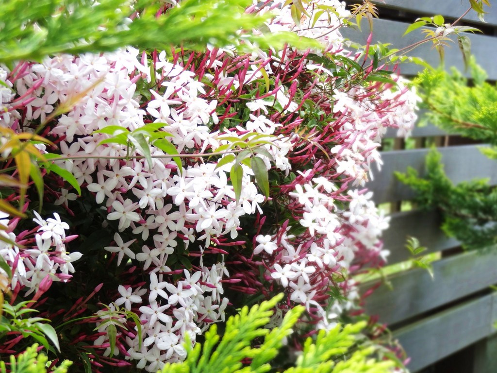 綺麗な写真ですね。うちの庭にも下の入口の三人組のところと、上のアプローチの突き当りの2か所に植えていて、通るたびによい香りが漂ってうっとりしています。