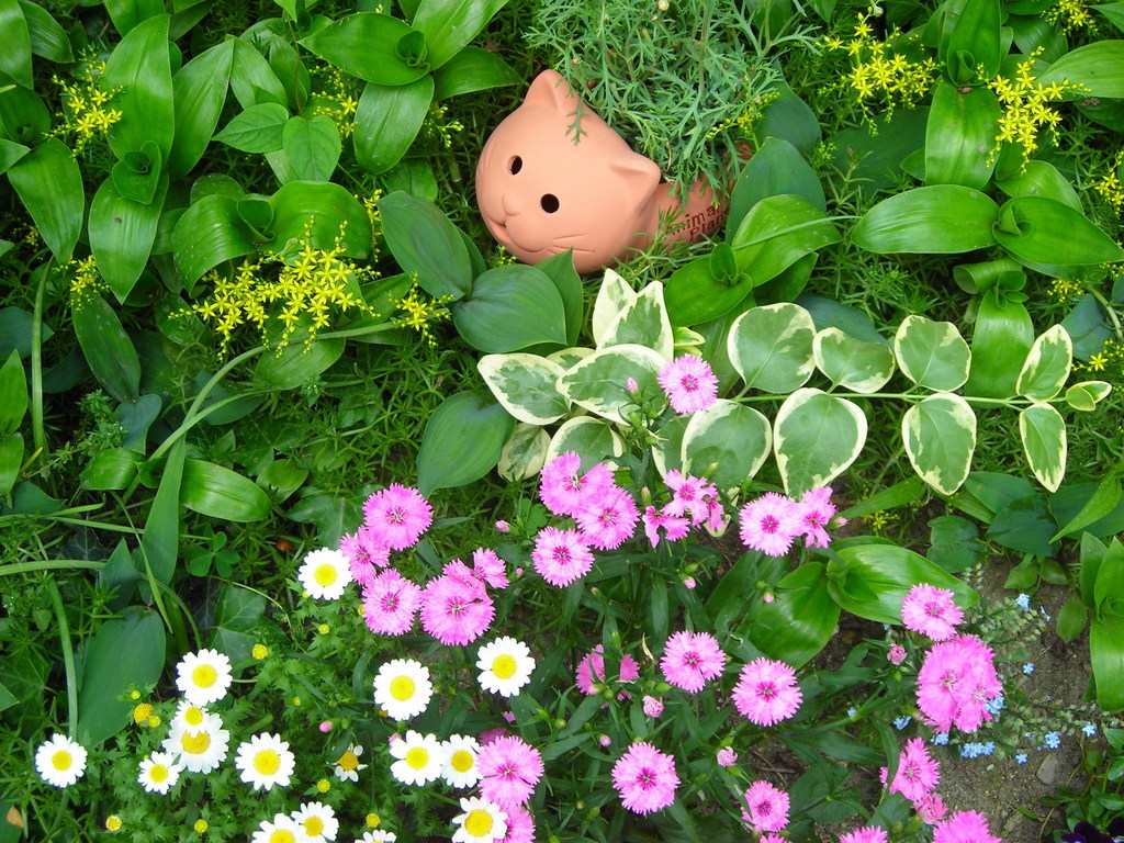 可愛い花の中に可愛い子猫ですね。家の庭にはアナグマくんが出てました。