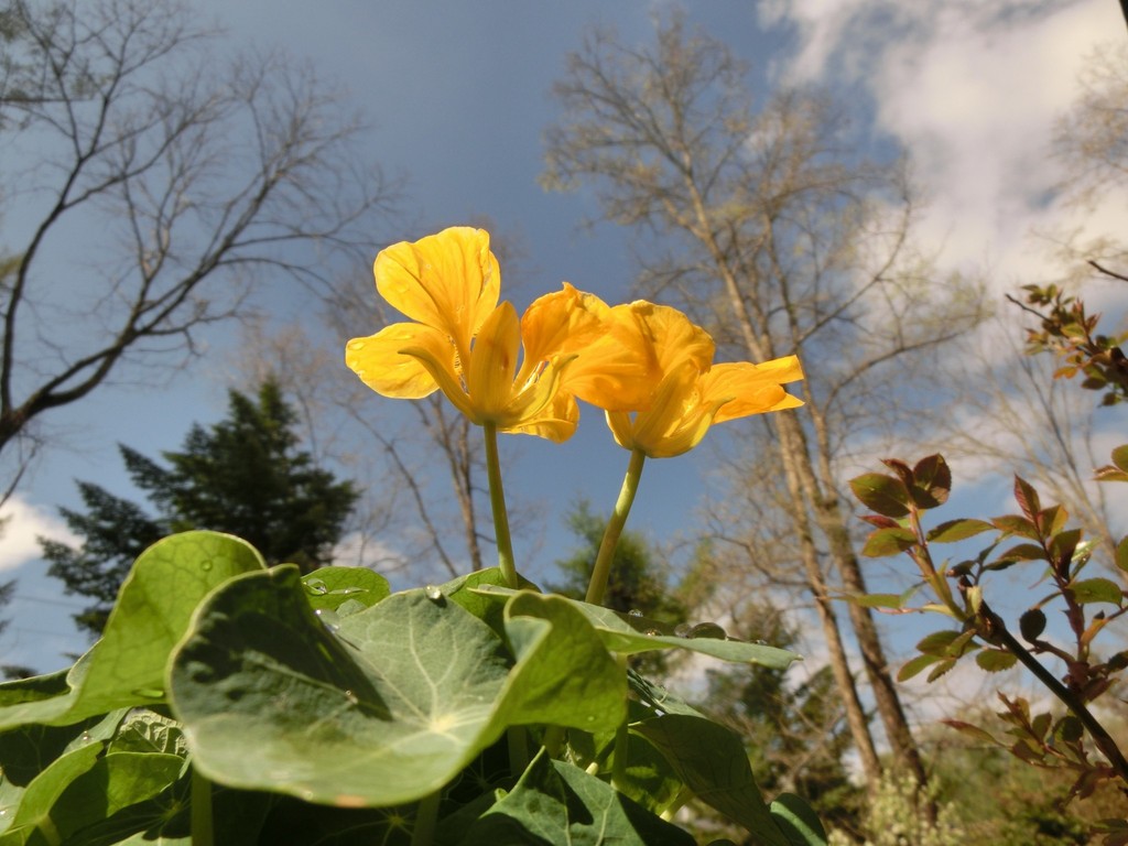明るい暖かな日差しと青空にはナスタチュームの黄色が似合います。