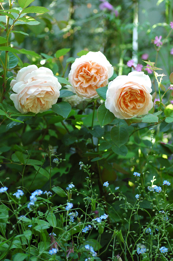 アンブリッジローズの美しさには癒やされますね。我が家も咲きだしたのでメーンステージにもってきました。