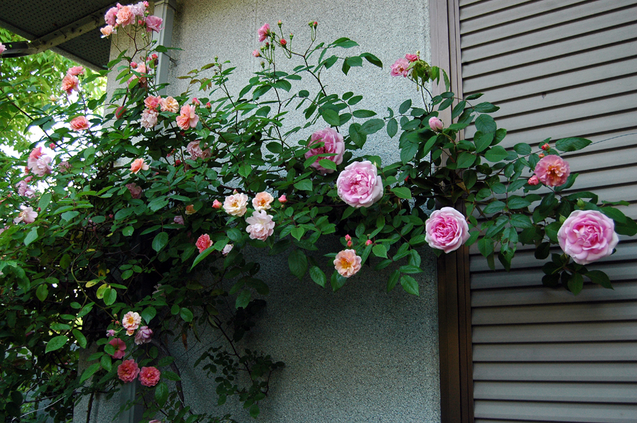 コガネモチのところからミニアーチへ。そして壁へと誘引しています。コーネリアとの組み合わせです。コーネリアも良く咲いています。もうこの組み合わせで孫、母、ご近所さんへプレゼントしました。孫が1番喜びを表現してくれたのには驚きでした~♪年長さんになって初めての生花をした日だったからかしら。生花にも興味を持っているらしく楽しそうに生けていたように先生が連絡帳に書かれていました。