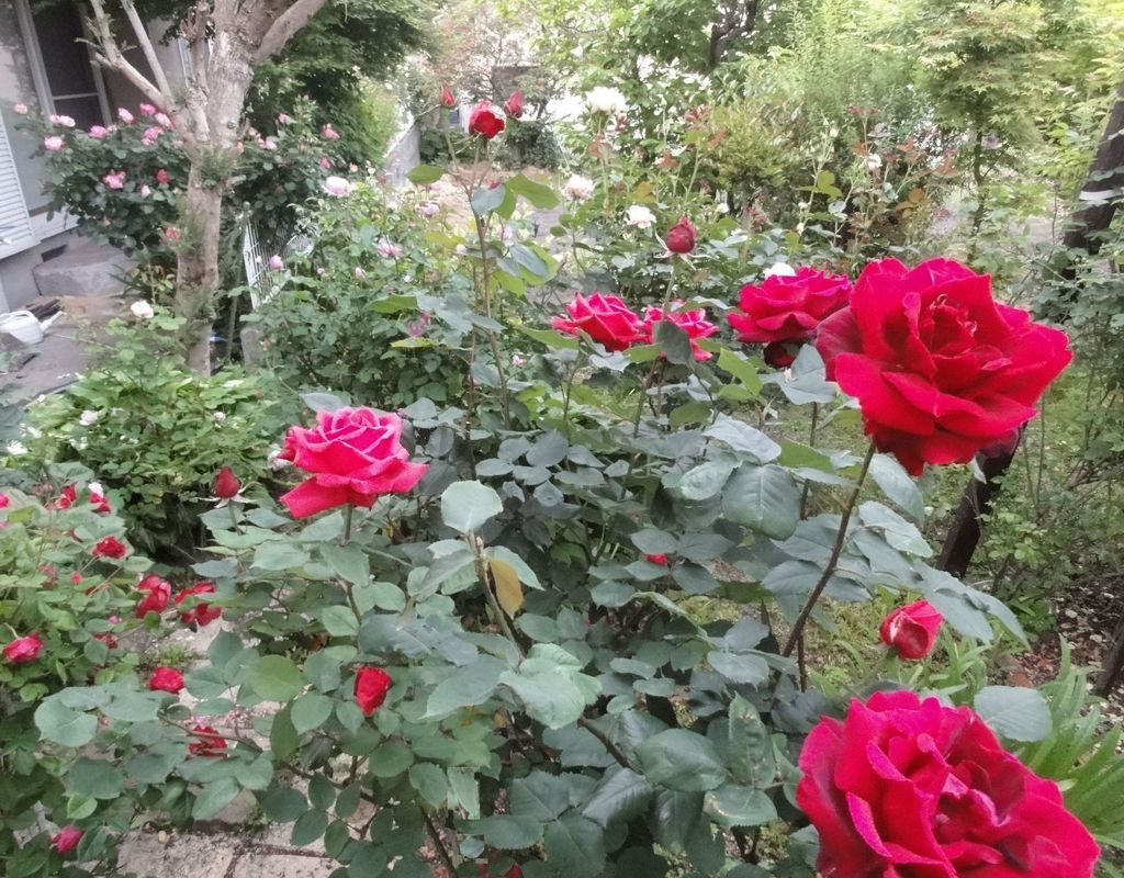 バラ,HT,四季,赤,中庭
