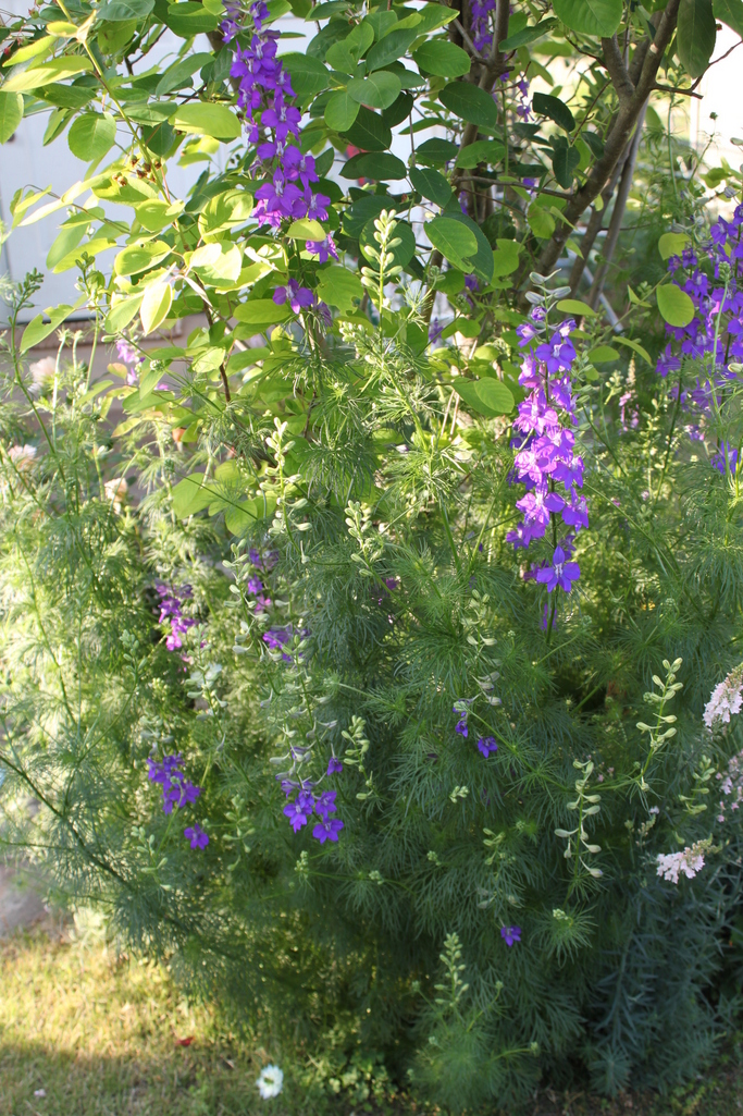 薔薇の下や横によく植えてあります、紫の千鳥草(ラクスパー)