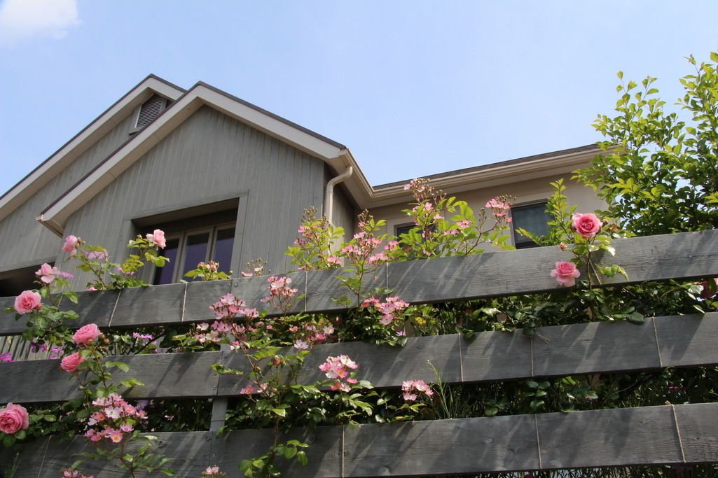 柵からのぞく可愛いバラ達・・素敵な光景ですね~。思わず立ち止りたくなります(笑顔)
