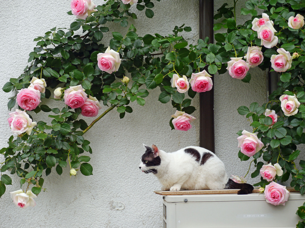 猫もやっぱり花が好き♪
