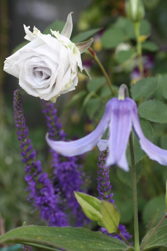 花の形はいろいろで、同系色でまとめるって、おしゃれですね。