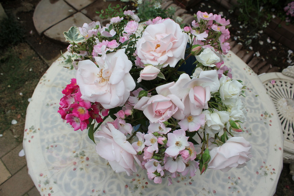 庭にバラがたくさんあると摘む楽しみがありますよね。私も雨が振る降る前にいっぱい切りました。
