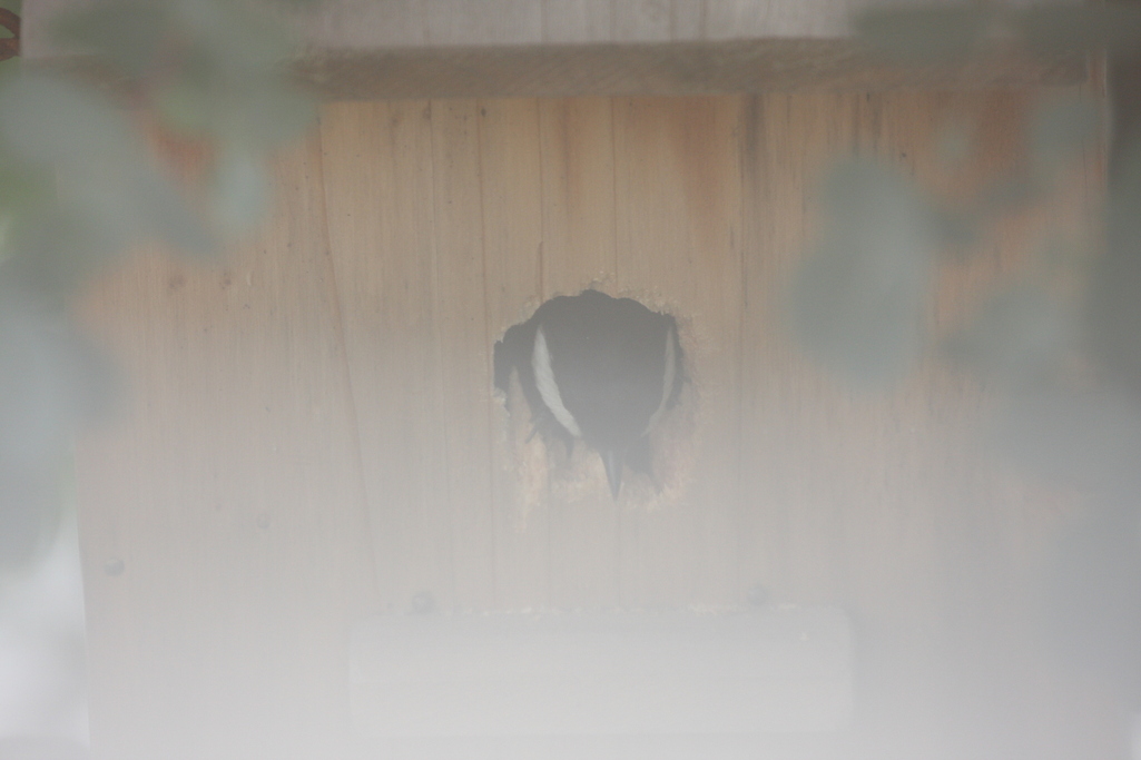 昨日の早朝よりコツコツと音が。。。庭の巣箱にシジュウカラが入って中から拡張工事をしていました。シジュウカラに会わせて28㎜で作ったけれどもうちょっと大きい方がいいみたいです。去年の秋に巣箱をかけてこんなにすぐに入ってくれるとは思いませんでした。