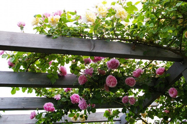 パーゴラにステキに絡んだバラ、良い雰囲気です。