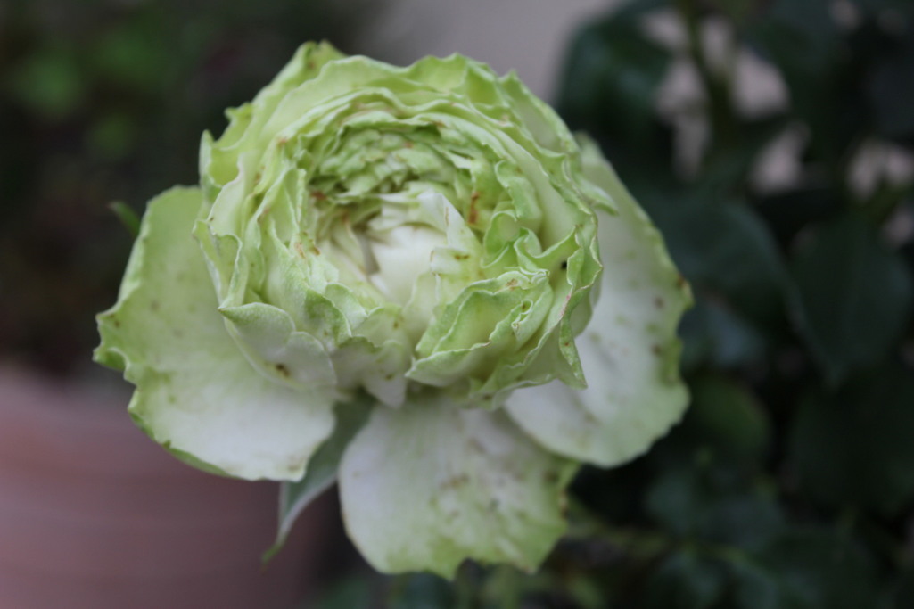 グリーンと白の褐色の「わかな」二女の名前と同じなので4年前に購入しましたが、花数も少なく、なかなかきれいに咲いてくれません。栽培方法が難しいです。