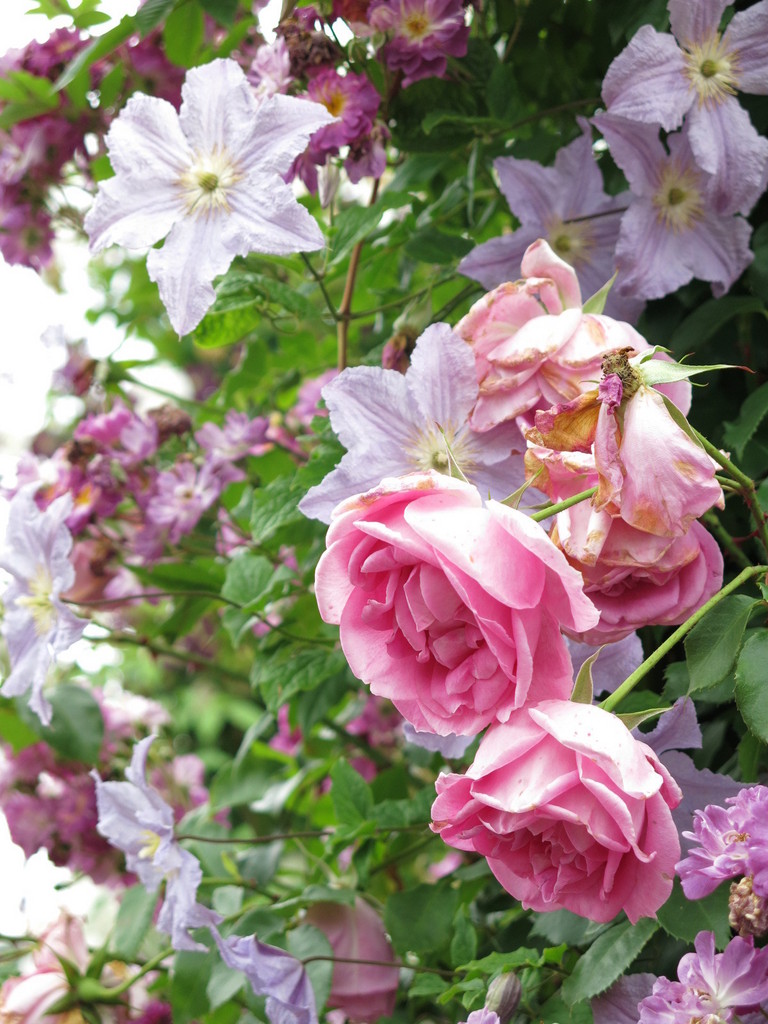 先日ハウステンボスまで旅行へ行き、撮ってきました。クレマチスとピンクのバラが涼しそうな感じです。