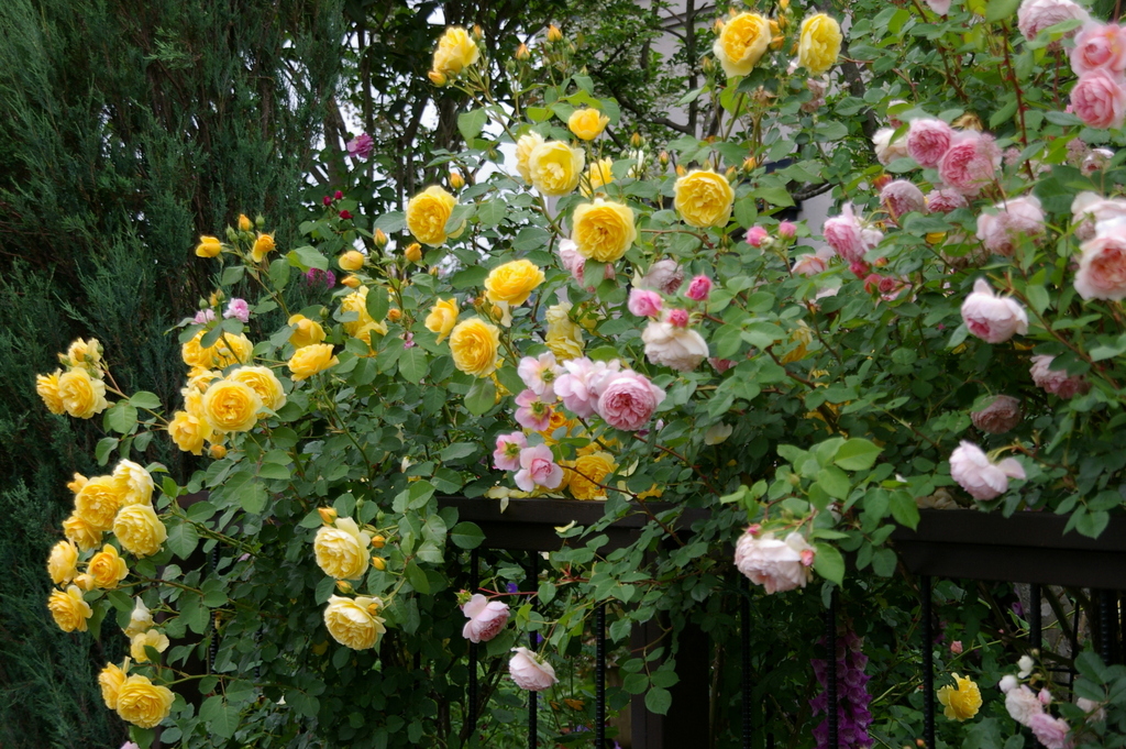 きれい咲いてますねぇ!ポットママさんはピンクやブルー系のお花のお庭に上手に黄色を入れてますね。