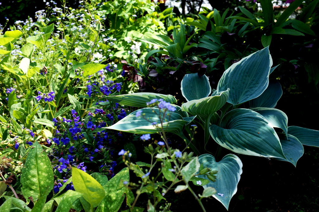 ホスタ エルニーニョ。 青いの小花の群生の中に在っても、その青い葉っぱは存在感抜群です(^^)