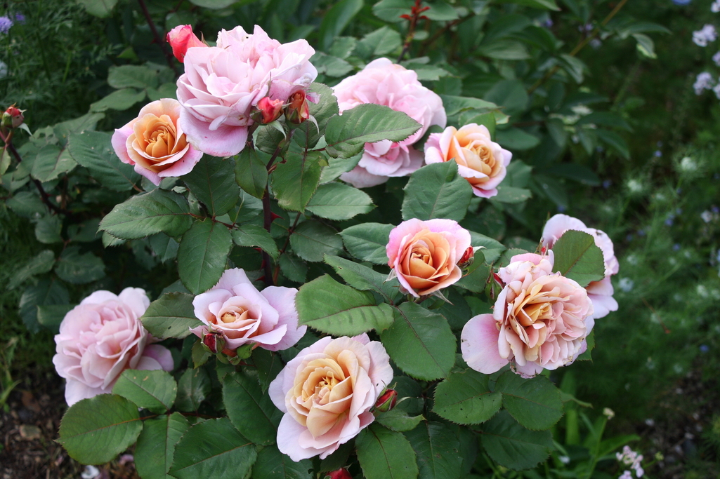 ずんぐりしています。ステムも短くアレンジむきではないように思います。でも花壇の前のほうで他の草花と合わせやすく何株かあっても良いバラです。