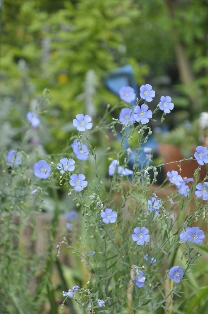 朝の庭でいっそう涼しげなアマ。 ドイツ占いでは 乙女がアマの種子を詰めた枕で眠ると夢で来の夫が姿をみせるというそうです。
