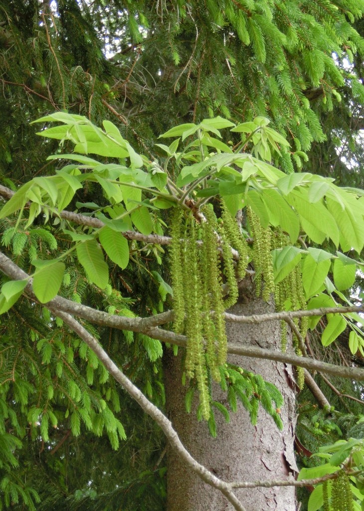 散歩コースに大きなオニグルミの木がありますが、今ちょうど花の時期でこんな花をつけています。地面に20~30cmあるこの花が一杯落ちています。