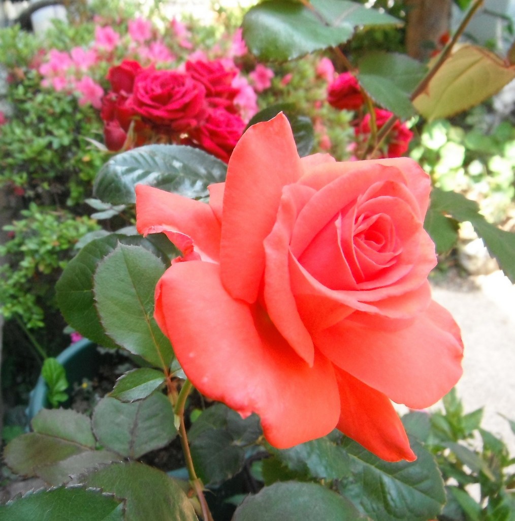 その優しい目線の先は、「行ってらっしゃい」「おかえり~お疲れ様❤」って、お話ししてくれているようです。レディーローズ、亡き愛犬と同じ名前のバラさん。このバラとの出会いが、バラ育成の窓でした。。。