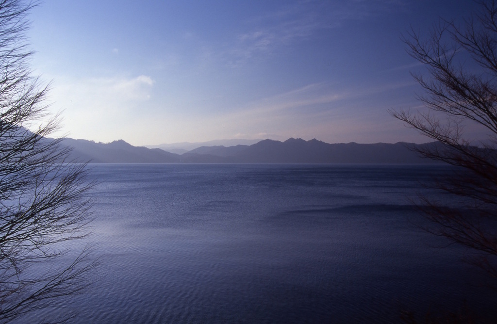 木の枝のシルエット、遠くに見える山々の少しずつ違う色、大好きです。