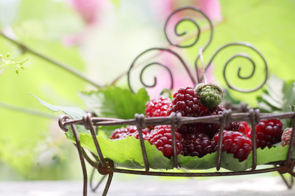 こんな物に載せてみました。名前が分かりませんが多分ボイセンベリーではないかと思います。