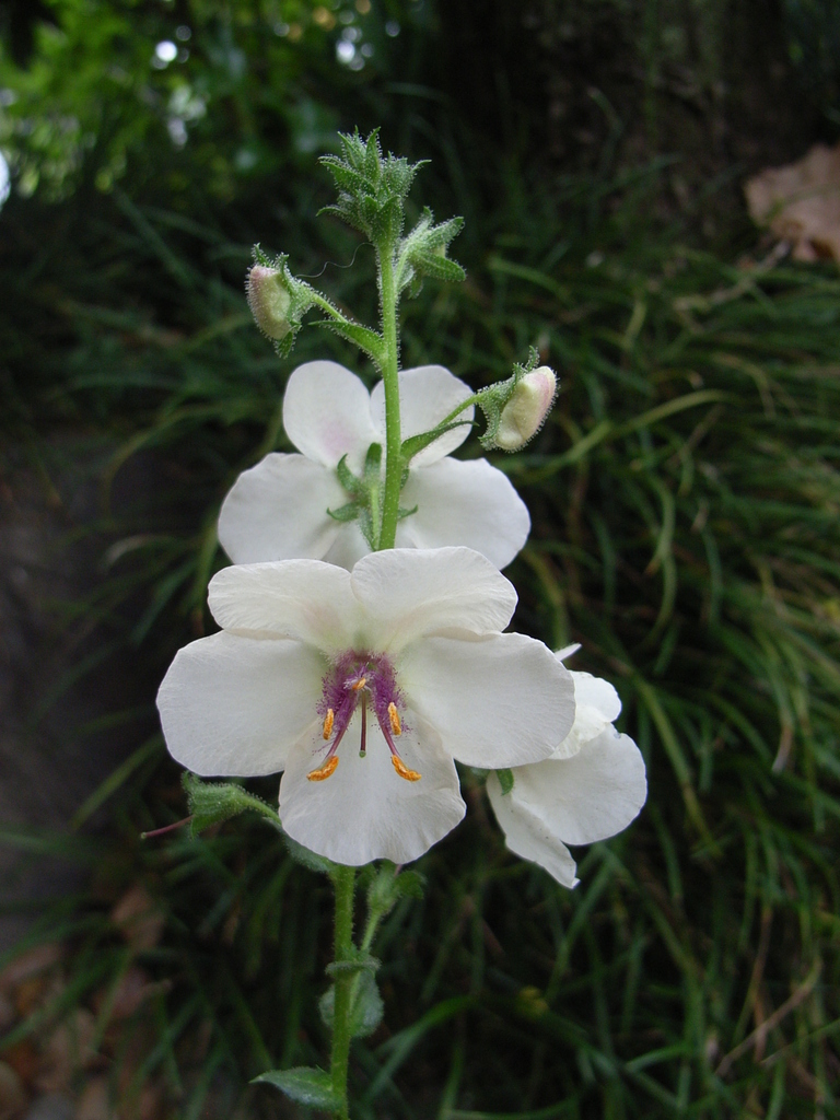 名前が分かりました。バーバスカム・アルビフローラムというお花でした。バーバスカムは黄色ばかりと思い込んでいましたが、赤や白もあったんですね。