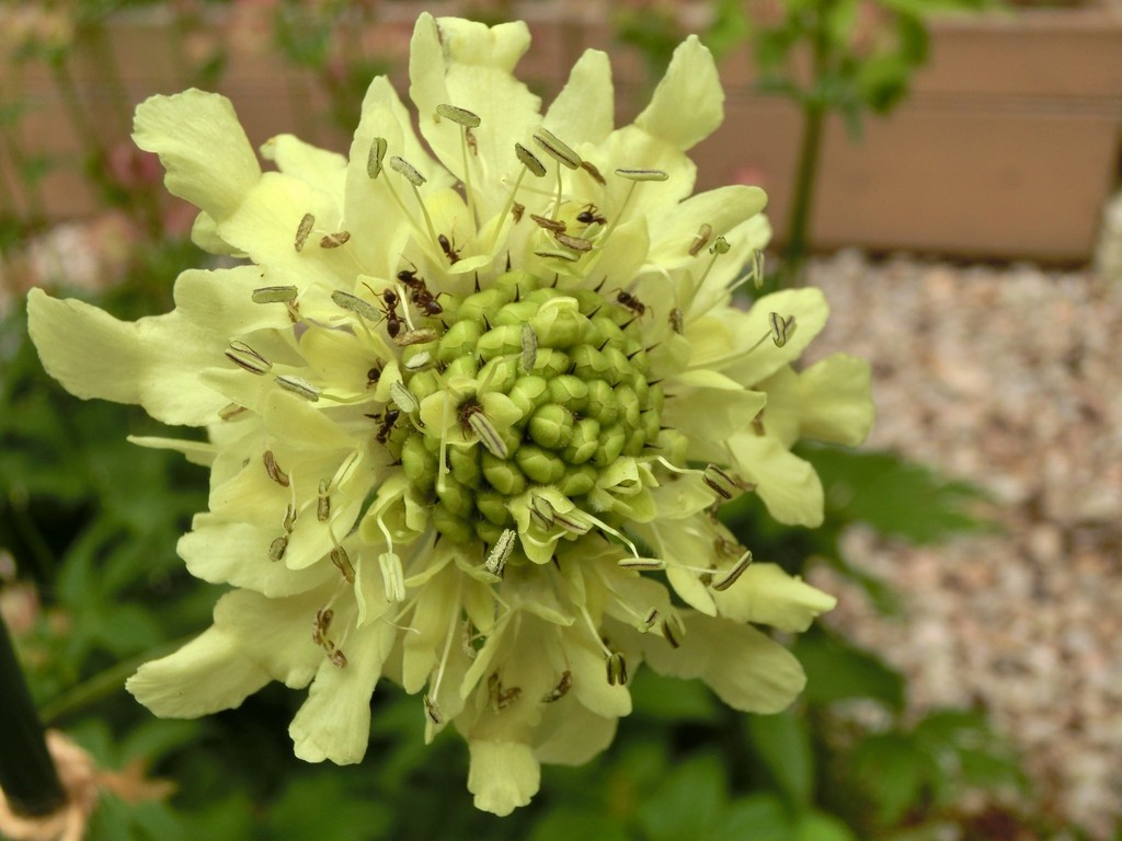 高さが2mにもなるマツムシソウの仲間のセファラリア・ギガンティア。花の蜜が美味しいのかアリンコがたくさん集まっています。