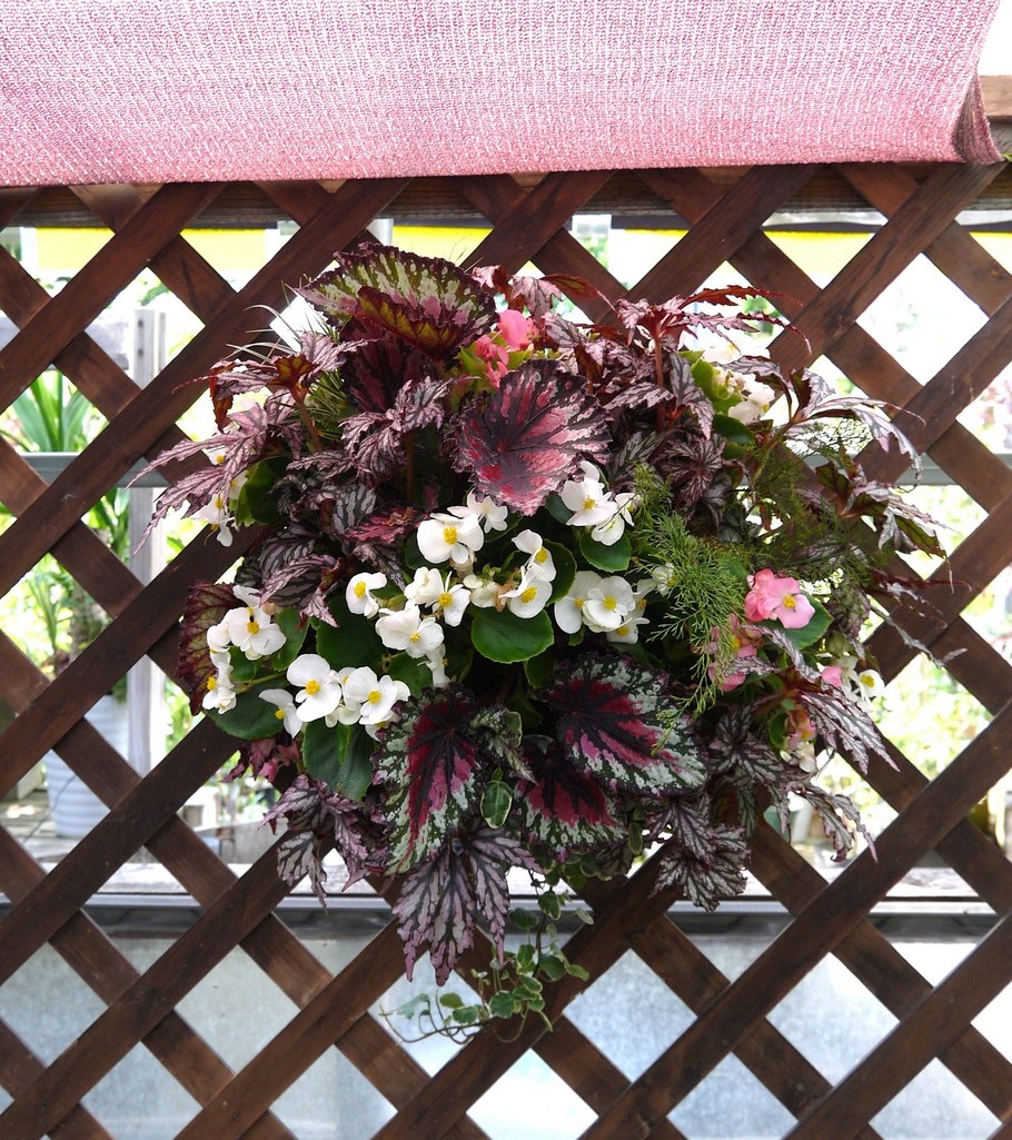 レックスベゴニアは葉焼けしやすいので写真のハンギングも