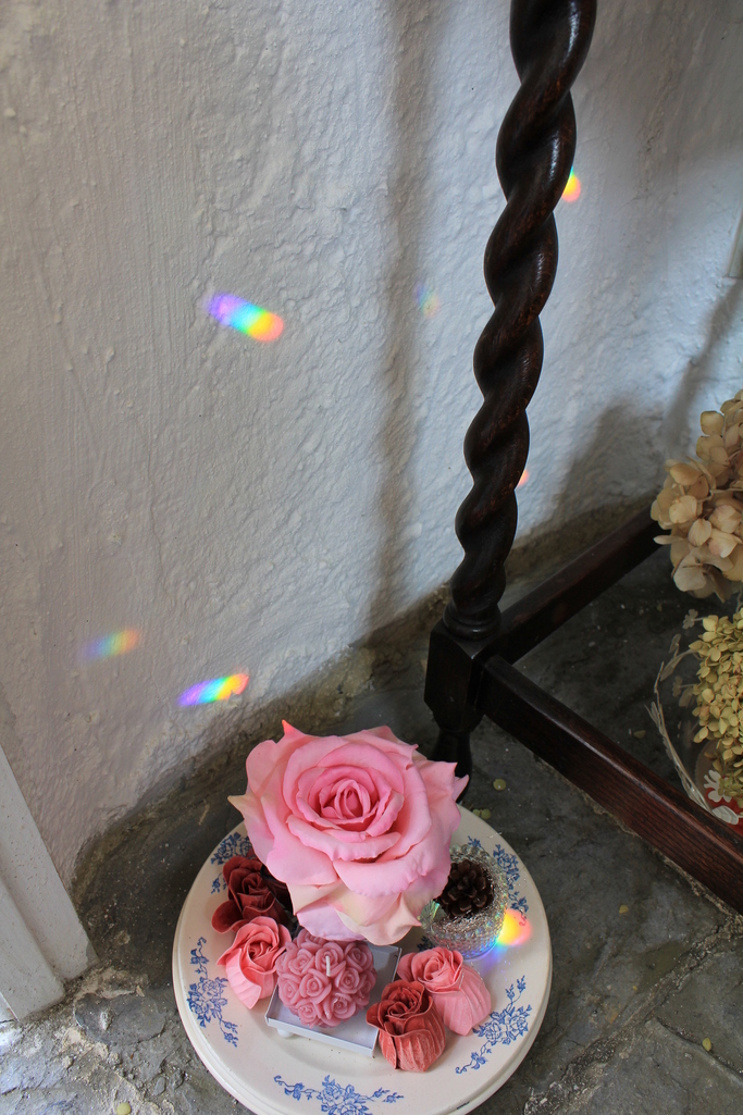光のダンスみたいに、壁に虹がキラキラと輝いていました。