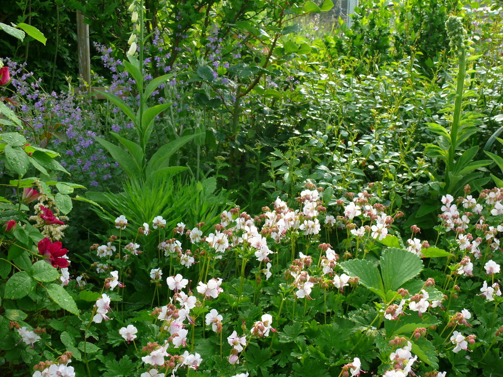 白いゲラニウムとジキタリス、さらにクリスタルフェアリ-が咲く姿を想像中