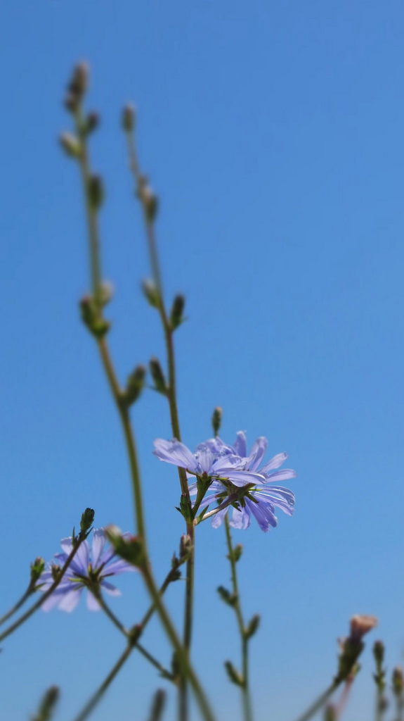 2年目にして約2mほど背丈が伸び、ルッコラの薄紫色の花が元気よく太陽に向かい咲きました。